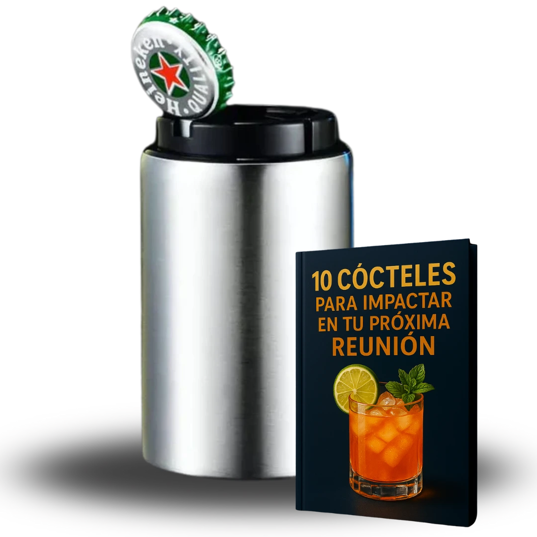 Funciona con cualquier botella con tapa metálica tradicional. No es apto para tapas de rosca, pero sí para cerveza, soda y bebidas con tapa estándar.